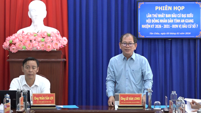 Ngày 03/02/2026, Ban bầu cử số 7 HĐND tỉnh An Giang tổ chức phiên họp thứ nhất nhằm triển khai một số nội dung công tác bầu cử đại biểu Quốc hội khóa XVI và bầu cử đại biểu HĐND các cấp, nhiệm kỳ 2026 – 2031 do ông Lê Văn Long, Phó Chủ tịch HĐND phường Tân Châu – Trưởng Ban bầu cử số 7 HĐND tỉnh An Giang chủ trì phiên họp. Tham dự phiên họp có đồng chí Võ Thị Kim Định, phó Bí thư thường trực Đảng ủy phường Tân Châu; đồng chí Nguyễn Văn Đoàn, Phó Bí thư – Chủ tịch UBND phường Tân Châu, cùng các thành viên Ban bầu cử số 7.