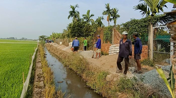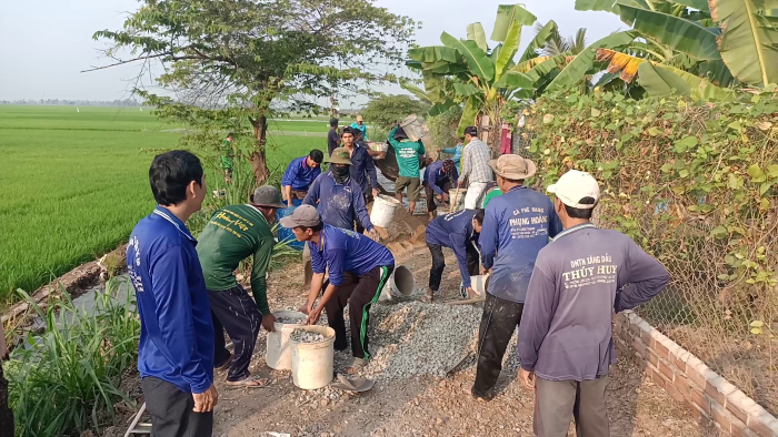 Theo đó, công trình được thực hiện với khoảng 20 lực lượng bà con nông dân, thanh thiếu niên tình nguyện chung tay thực hiện công tác bê tông hóa với đoạn đường khoảng 120m, ngang 2,5m. Nguồn kinh phí được huy động xã hội hóa từ bà con nông dân có đất canh tác khu vực này và nhiều bà con gần xa.
