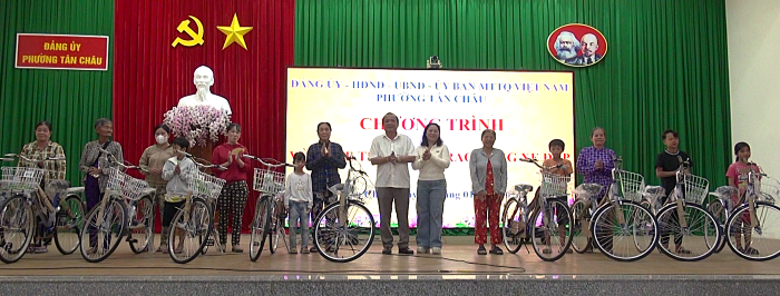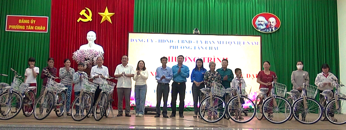 Dịp này đã trao 49 chiếc xe đạp cho các em học sinh nghèo, học sinh khó khăn và người lao động nghèo địa bàn phường Tân Châu và phường Long Phú. Trước đó, đã trao tặng 31 chiếc xe đạp cho các đơn vị xã Tân An, Vĩnh Xương và Châu Phong. Với tổng số xe được trao tặng trong chương trình “Vòng xe tiếp sức – trao tặng xe đạp” là 80 chiếc, trị giá mỗi chiếc xe đạp khoảng 2 triệu đồng, do gia đình ông Nguyễn Minh Hùng và bà Đỗ Thị Phúc vận động người thân và các doanh nghiệp đóng góp hỗ trợ./.