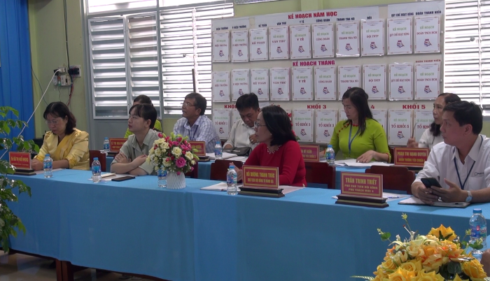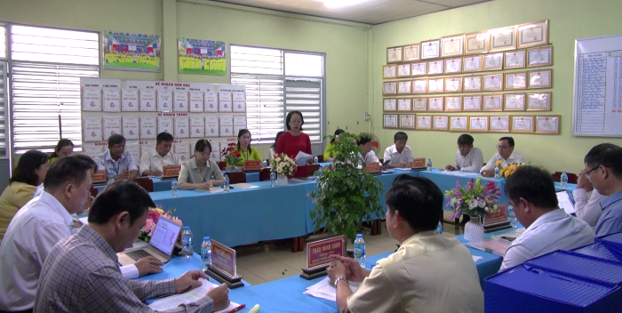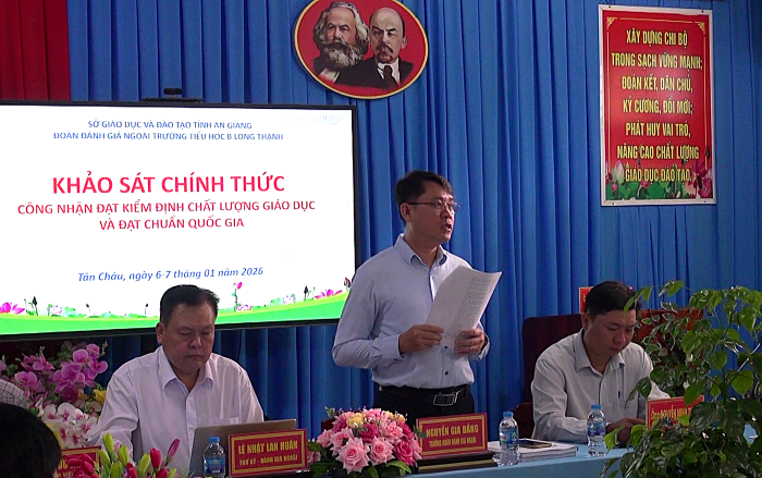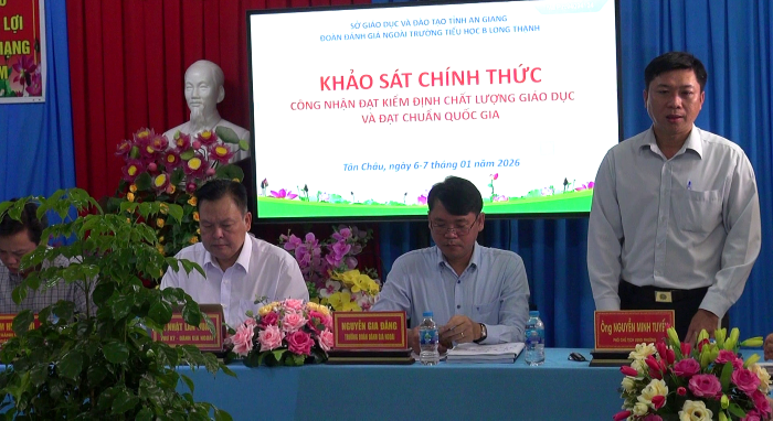Phát biểu kết luận buổi làm việc ông Nguyễn Gia Đẳng, Trưởng phòng, Phòng quản lý chất lượng và công nghệ thông tin - Sở GDĐT An Giang trưởng đoàn đánh giá Ngoài đề nghị đơn vị trường cần bổ sung các báo cáo kết quả cải tiến mới trong năm. Duy trì phát huy điểm mạnh, khắc phục điểm hạn chế. Điều chỉnh phù hợp công tác phân công nhiệm vụ chuyên môn cho cán bộ, giáo viên. Yêu cầu chính quyền địa phương quan tâm hơn nữa về công tác nhà trường trong thực hiện các tiêu chí để trường đạt chuẩn quốc gia. Cần có sơ kết, tổng kết các kế hoạch chiến lược, công tác phối hợp, tạo điều kiện cho giáo viên nâng cao chất lượng chuyên môn và các hoạt động cộng đồng. Cần có báo cáo kết quả từng chuyên đề đã triển khai, để có định hướng làm tốt hơn, cần chọn lọc các nội dung cốt lõi để tuyên truyền trực quan. Có định hướng xây dựng trường hướng đến trường đạt chuẩn quốc gia mức độ 2 đến năm 2030./.