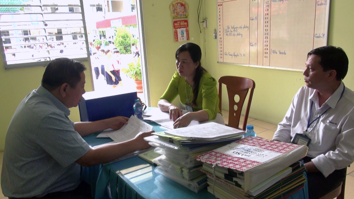 Tại buổi khảo sát đoàn đã tiến hành kiểm tra hồ sơ minh chứng đối với 5 tiêu chuẩn cùng những tiêu chí tương ứng. Tiêu chuẩn 1: Tổ chức và quản lý; 2: Đội ngũ lãnh đạo, kiểm định viên, hội đồng kiểm định chất lượng giáo dục; Tiêu chuẩn 3: Cơ sở vật chất, trang thiết bị; Tiêu chuẩn 4: Hoạt động kiểm định chất lượng giáo dục; Tiêu chuẩn 5: Công khai, minh bạch hoạt động.