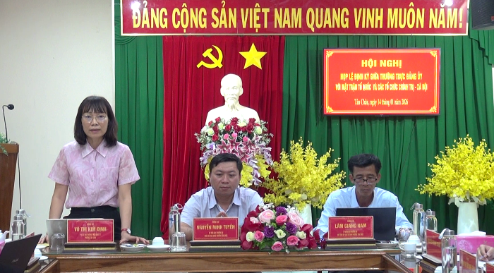 Chiều ngày 14/1/2026, Thường trực Đảng ủy phường Tan Châu chủ trì họp lệ thường kỳ giữa Thường trực Đảng ủy với Ủy ban Mặt trận Tổ quốc Việt Nam và các tổ chức chính trị – xã hội phường, đánh giá tình hình hoạt động năm 2025, triển khai nhiệm vụ trọng tâm năm 2026. Tham dự hội nghị có đồng chí Võ Thị Kim Định, phó Bí thư Thường trực Đảng ủy phường, đồng chí Lâm Giang Nam, UV BTV Đảng ủy – Chủ tịch UBMTTQ VN phường; ông Nguyễn Minh Tuyến, UV BTV Đảng ủy – phó Chủ tịch UBND phường.