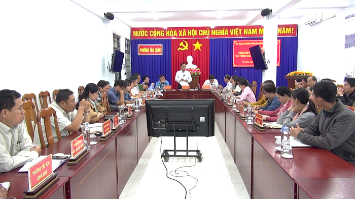 Sáng ngày 10/01/2025, UBND phường Tân Châu tổ chức hội nghị tổng kết tình hình phát triển kinh tế - xã hội năm 2025 và triển khai phương hướng, nhiệm vụ trọng tâm năm 2026. Ông Nguyễn Văn Đoàn, phó Bí thư Đảng ủy – Chủ tịch UBND phường dự và chỉ đạo hội nghị, cùng tham dự có các phó Chủ tịch UBND phường, các phòng ban chuyên môn, các đơn vị trường học, y tế, công an, quân sự và Ban nhân dân các khóm.