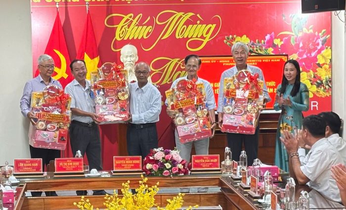 Dịp này, Đảng ủy, HĐND, UBND, UBMTTQ VN phường Tân Châu đã gửi các vị đại biểu các cơ sở tôn giáo, thờ tự và các nhân sĩ, trí thức trên địa bàn những phần quà Tết ấm áp nghĩa tình. Theo đó, các cơ sở tôn giáo, thờ tự trên địa bàn cũng có những phần quà trao tặng Đảng ủy, HĐND, UBND, UBMTTQ VN phường Tân Châu cùng những lời chúc xuân mới thắng lợi./.
