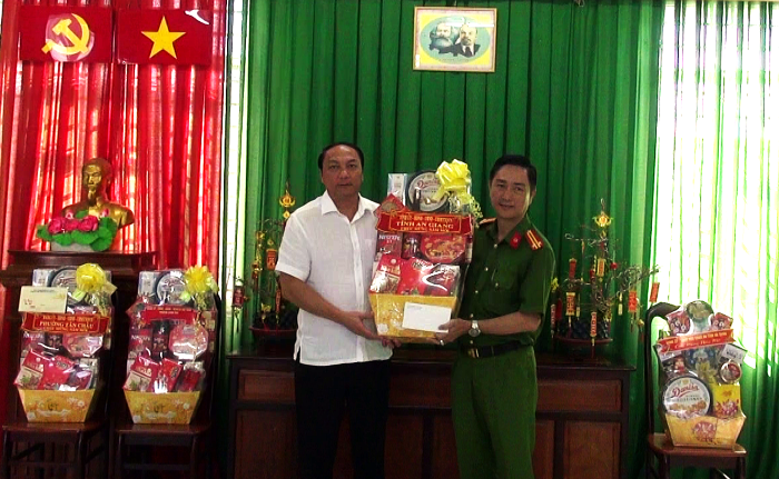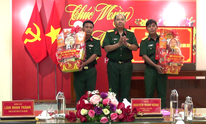 Bộ chỉ huy quân sự tỉnh, Công an tỉnh cũng chúc và trao quà tết đến Ban chỉ huy sự và Công an phường Tân Châu và Long Phú.