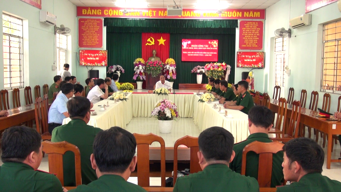 Tại các nơi đến thăm, Phó Bí thư Tỉnh ủy An Giang Lâm Minh Thành nghe báo cáo nhanh về tình hình thực hiện nhiệm vụ chính trị, công tác trực sẵn sàng chiến đấu, công tác nhân sự điều động bổ sung tại Ban chỉ huy Quân sự các xã, phường. Công tác phối hợp bảo đảm an ninh trật tự và việc triển khai các hoạt động chăm lo Tết cho Nhân dân, nhất là hộ nghèo, cận nghèo, gia đình chính sách và người có công với cách mạng trên địa bàn, công tác đảm bảo an ninh trật tự trước, trong và sau tết nguyên đáng, công tác chuẩn bị công tác tuyển quân, công tác bầu cử đại biểu Quốc hội khóa XVI và đại biểu HĐND các cấp nhiệm kỳ 2026-2030.