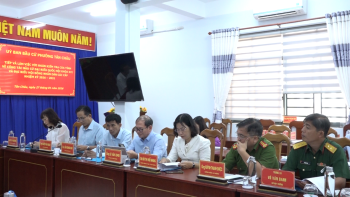 Sáng ngày 27/01/2026, Đoàn kiểm tra công tác bầu cử Đại biểu Quốc hội khóa XVI và Đại biểu HĐND các cấp nhiệm kỳ 2026 – 2031do ông Lê Thanh Việt - Ủy viên Ban thường vụ Tỉnh ủy, Phó Chủ tịch thường trực UBMTTQ tỉnh, Ủy viên Ủy ban bầu cử tỉnh làm trưởng đoàn đến kiểm tra công tác chuẩn bị bầu cử Đại biểu Quốc hội khóa XVI và Đại biểu HĐND các cấp nhiệm kỳ 2026 – 2031 tại phường Tân Châu. Tiếp và làm việc với đoàn có ông Nguyễn Minh Hùng Bí thư Đảng ủy - Chủ tịch HĐND phường; bà Võ Thị Kim Định - Phó Bí thư Thường trực Đảng ủy; ông Nguyễn Văn Đoàn - Phó Bí thư Đảng ủy, Chủ tịch UBND phường - Chủ tịch Ủy ban bầu cử, cùng các phòng, ban chuyên môn của phường.
