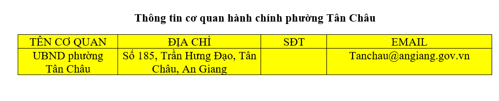 | Ủy ban nhân dân phường Tân Châu | Số 185, Trần Hưng Đạo, Tân Châu, An Giang | tanchau@angiang.gov.vn |